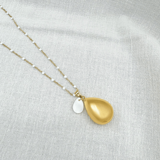 Le bola de grossesse "Cahya", signifiant Légère en Indonésien, est le bola d'une finesse incomparable. Il incarne la grâce, la pureté et la légèreté de l'attente. C'est un bijou délicat en forme de goutte avec son pendentif en nacre. Sa douce mélodie accompagne les mouvements de la future maman et apaise bébé tout au long de la grossesse.