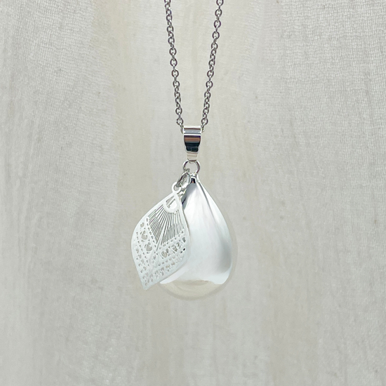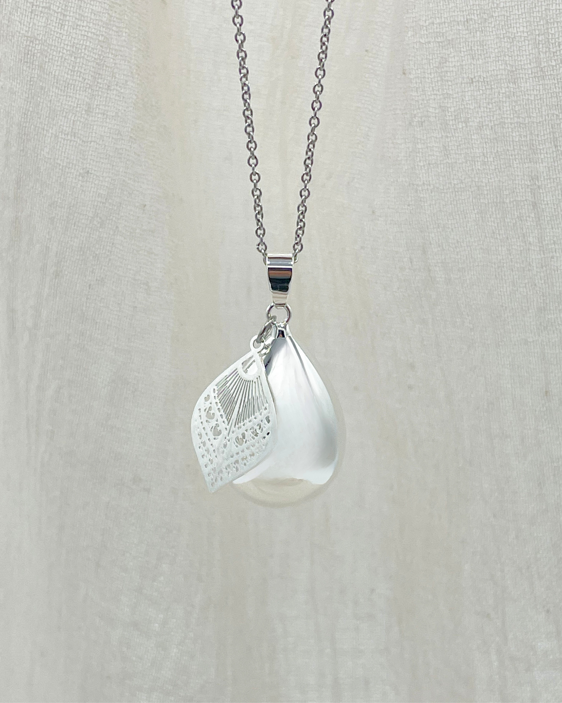 Le bola de grossesse "Renda", qui signifie Dentelle en Indonésien, est un chef-d'œuvre de finesse. C'est un bijou délicat en forme de goutte, avec son pendentif orné de motifs inspiré de la dentelle. Sa douce mélodie accompagne les mouvements de la future maman et apaise bébé tout au long de la grossesse, et même après !