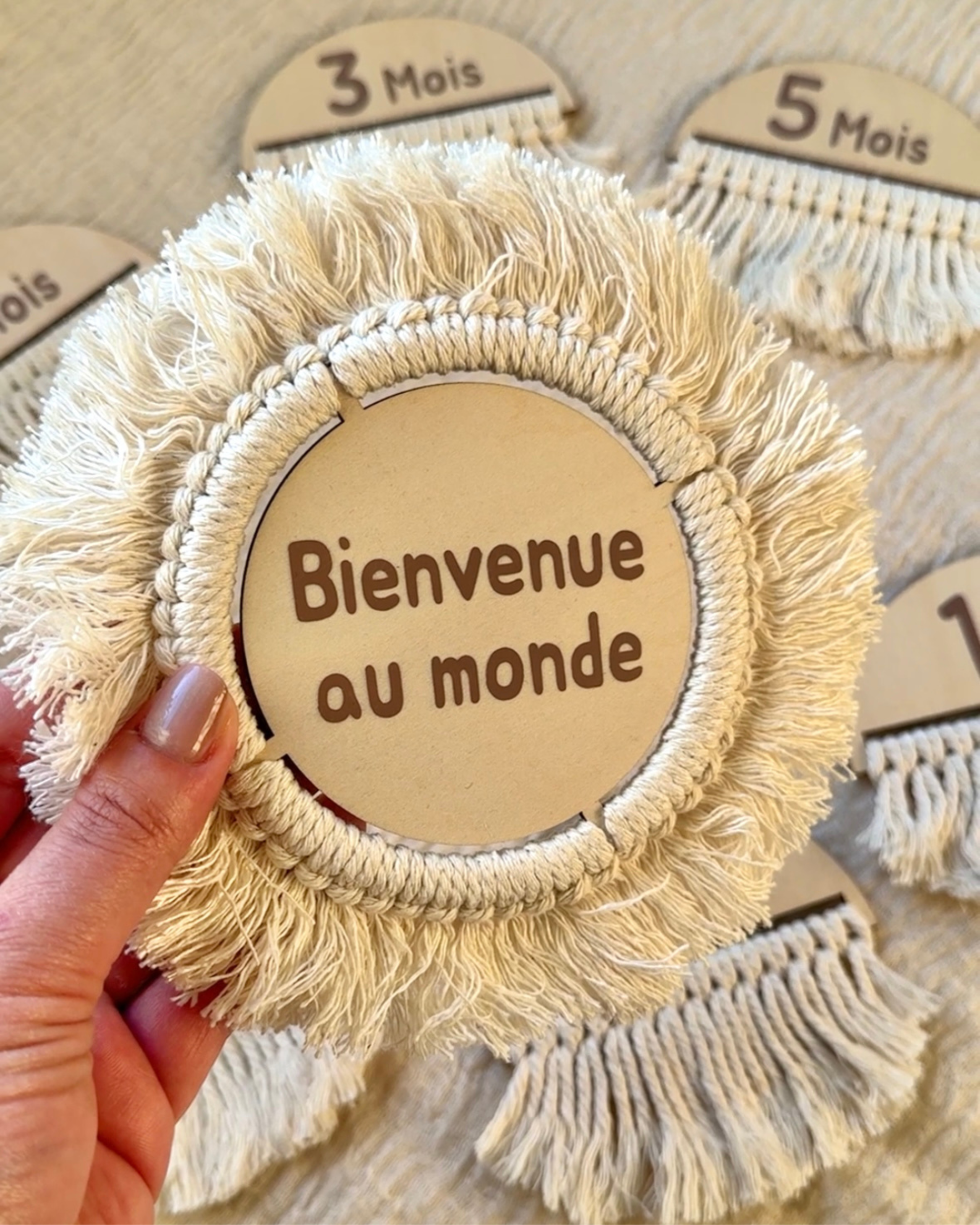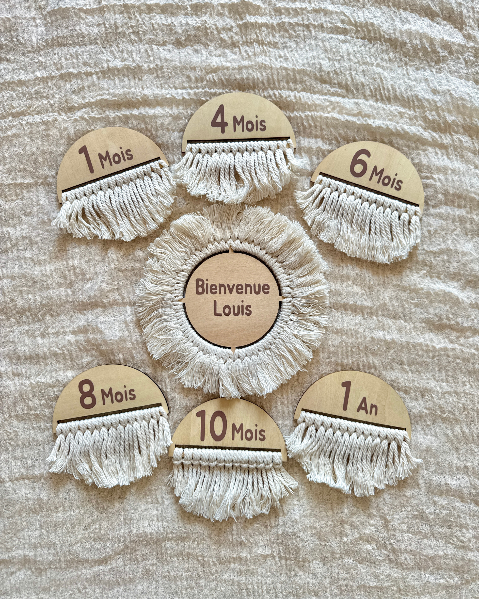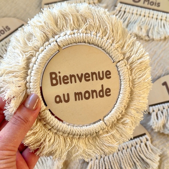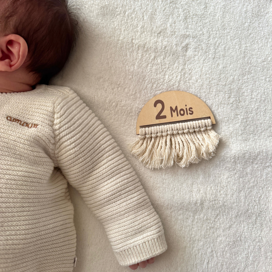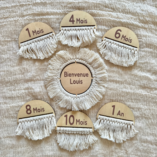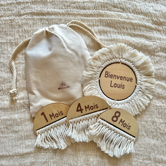 Immortalisez chaque moment précieux de votre grossesse puis des premiers mois de votre bébé jusqu’au 1er anniversaire, avec nos jolies cartes étapes en bois et macramé !