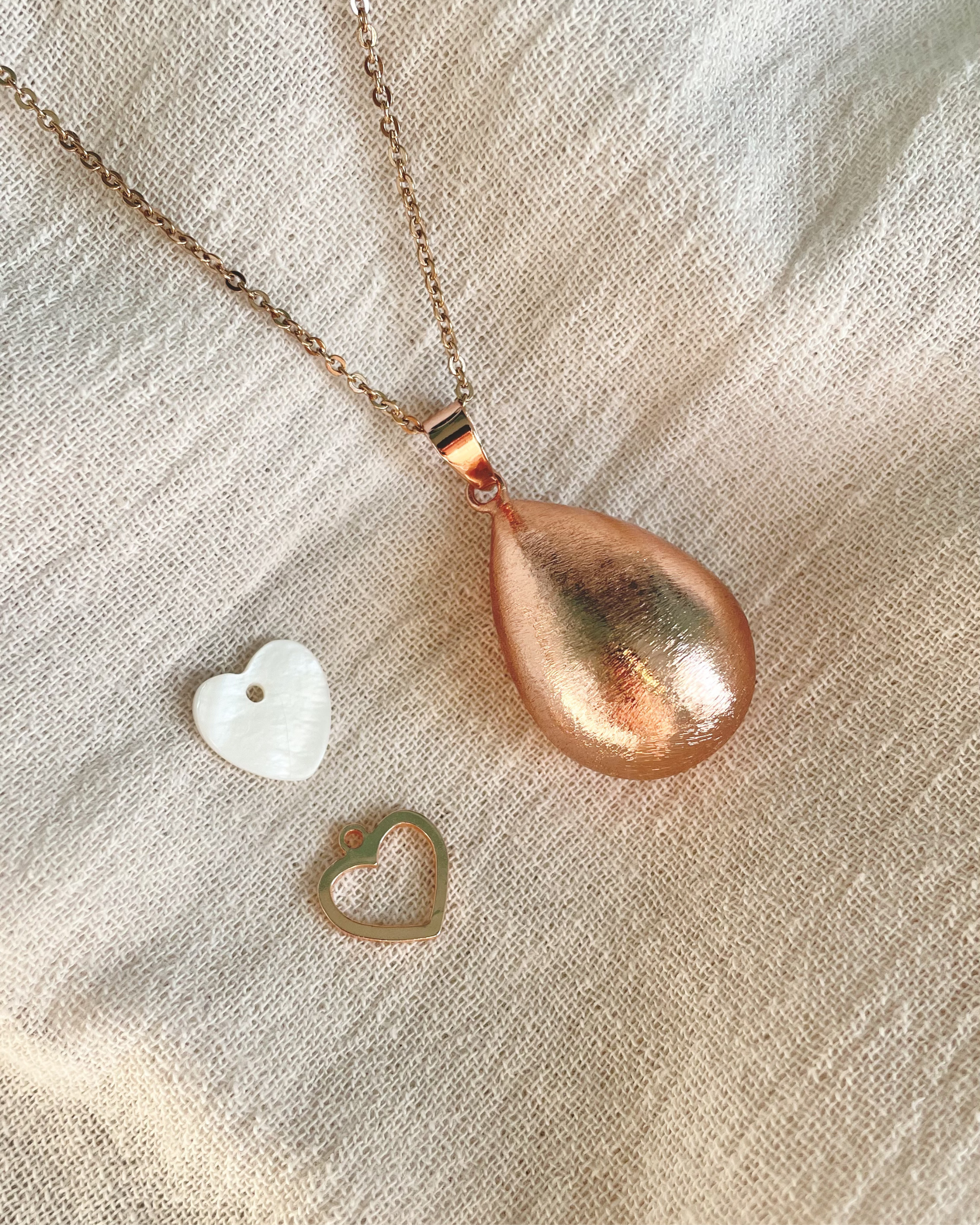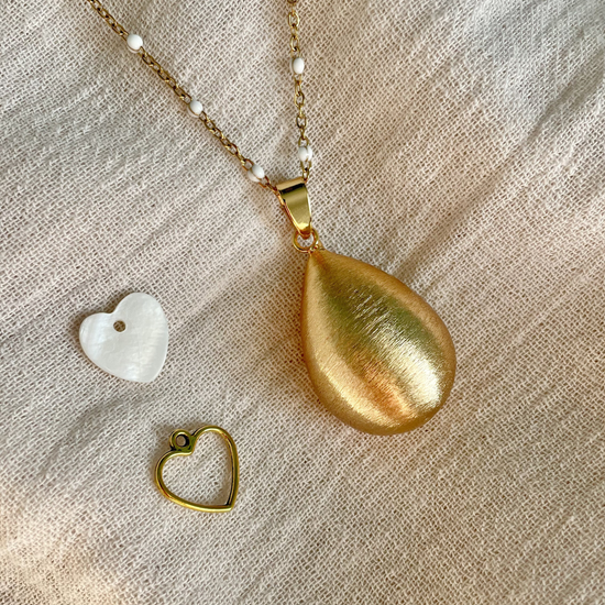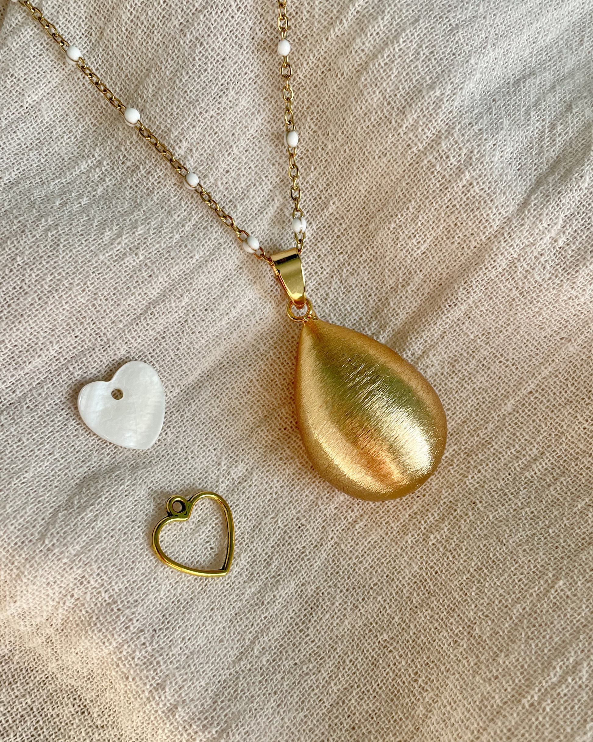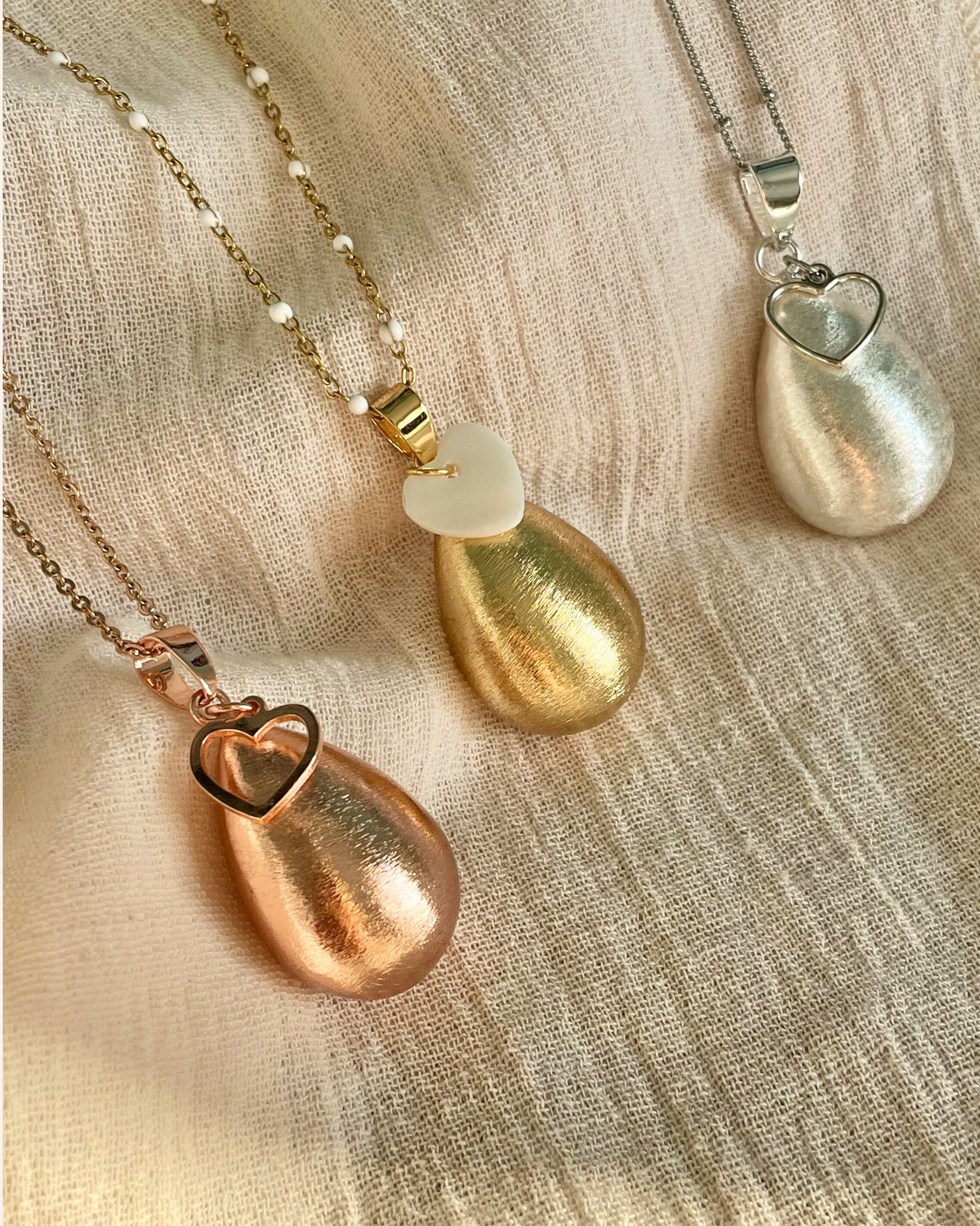 Nos bolas sont en cuivre, plaqué or 18 carats, argent 925 ou acier inoxydable, avec des chaînes en acier inoxydable.